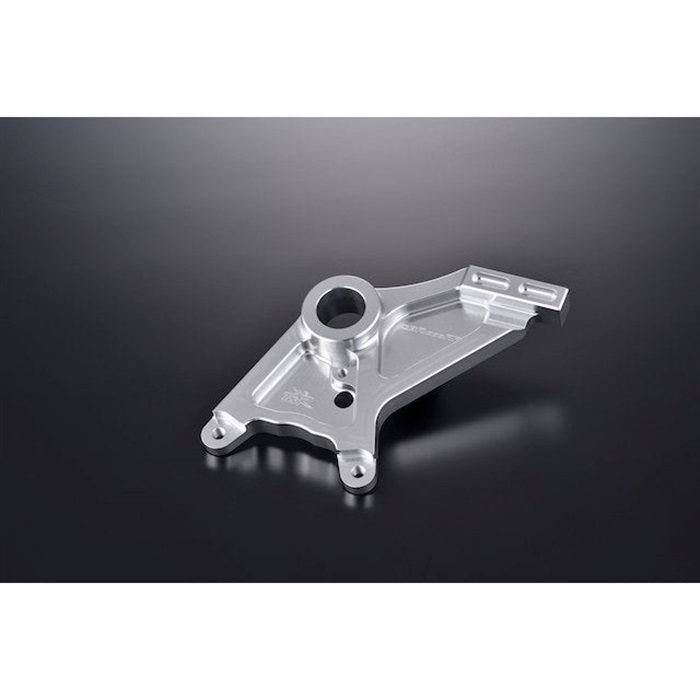 専用キャリパーブラケットは7075-T6アルミの総削り製作、純正スイングアームに無加工にて装着可能としました。
