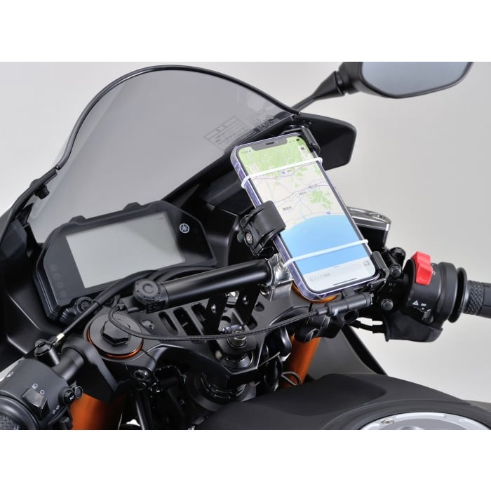 好評のマルチバーホルダーにUSBソケットを組み込みました。ハンドル回りの配線をスッキリ処理できます。USB 5V2.1A出力で、iPhoneを始めモバイル機器の充電が可能です。セパレートハンドル車でも見やすいセンター位置にデジモノを装着できます。