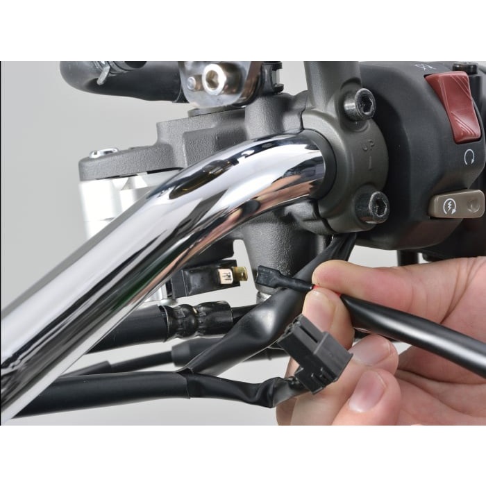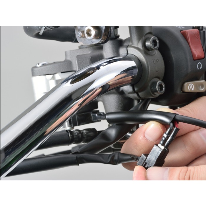スマートフォンやナビなどの給電に便利な電源取り出しハーネス。カプラー接線でアクセサリー電源の+と-の配線を取り出せるので、イグニッションキーのON⇔OFFに連動し、キーOFFで電源がカットされます。バッテリーに近い「シート下」取り出しタイプを使えば、D-UNITのアクセサリー電源接続も簡単。取り付けが簡単な場所を選び、分かりやすい取扱説明書も付いているので、初心者も安心して取り付けできます。
