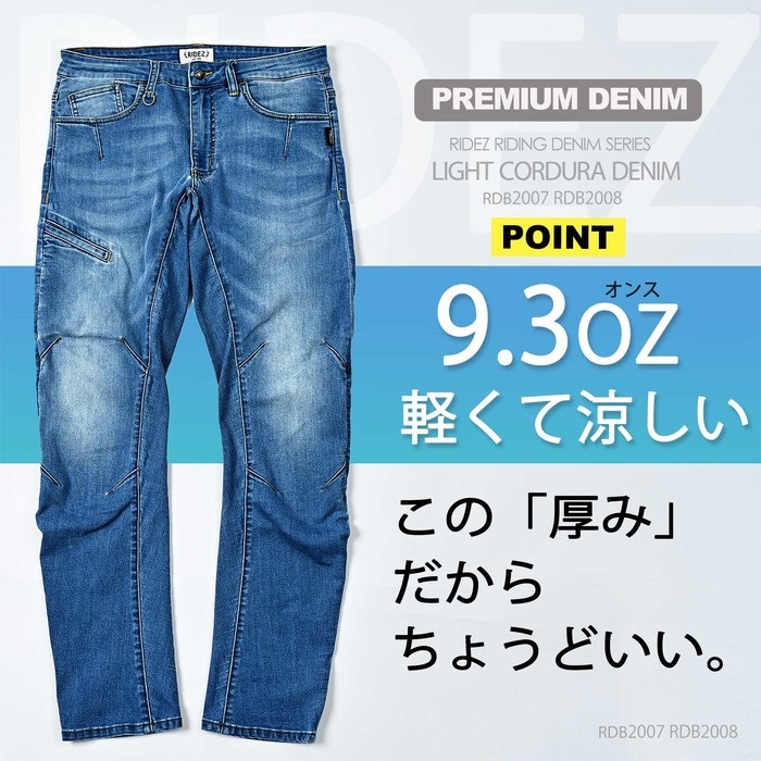 CORDURA繊維を使用し、履き心地が良くさらに動きやすい9.3ozの3シーズンデニムです。