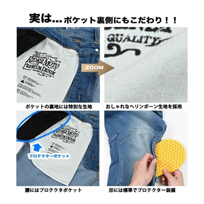 後ろポケットにはRIDEZの雷マークをエンボスで表現。