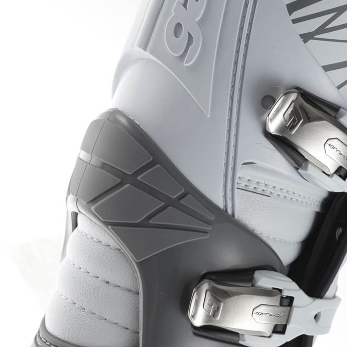 ガエルネ最高峰モトクロスブーツのSG-12やSG-10のフレームは通常ブーツの足首部分からふくらはぎ上部までフレームが伸びています。これによりプロテクション性は格段にアップするものの、バイクを降りた時は動きづらいというデメリットが付いてきます。ファストバックの「アンクルフレーム」はコンパクトな作りになっていることにより基本的なプロテクションを抑えつつ、降りた時の動作もスムーズにしてくれます。乗り降りの多いエンデューロやラリーの競技には欠かせないポイントとなるでしょう。