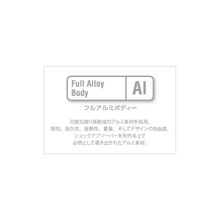 さらに、可能な限り全てのパーツにアルミ削り出しを採用することで、外観の美しさに加え、軽量化・高剛性・優れた放熱性を両立し、新たなショックアブソーバーの可能性を追求しています。