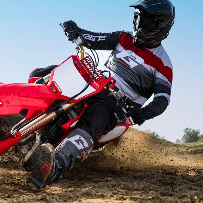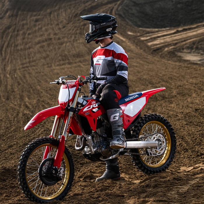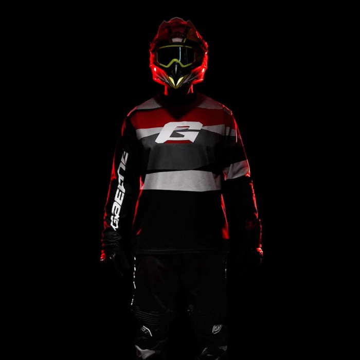 ガエルネMXブーツとレーシングの情熱をモチーフにしたレギュラーフィットのモトジャージです。