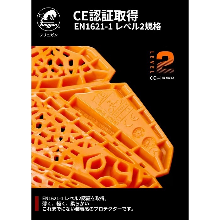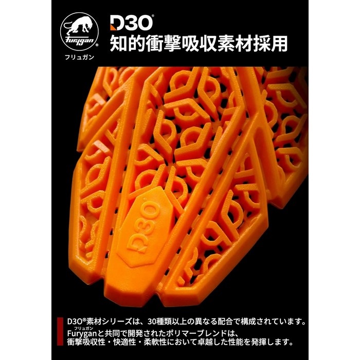 柔らかく通気性に優れたD3O 最薄レベル2 プロテクター。FuryganとD3Oが独占的に共同開発、柔軟性と通気性において、新たな基準を確立。人間工学に基づいた設計で、活動時は違和感なくフィットします。