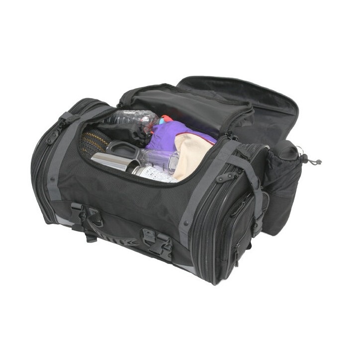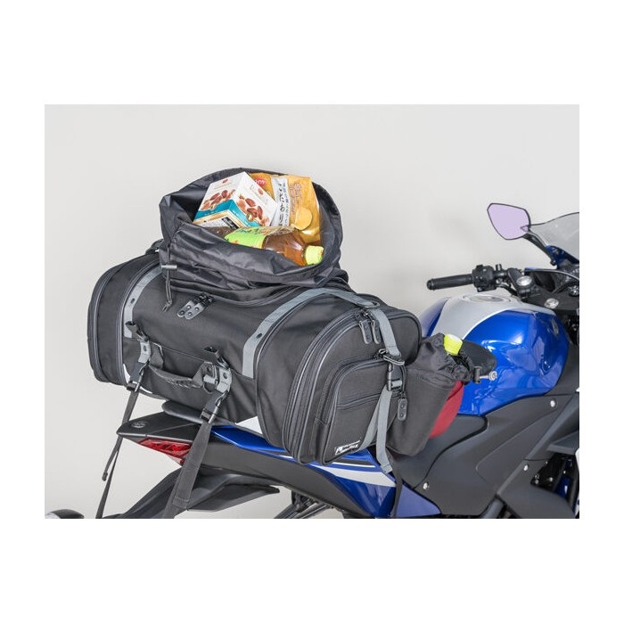 本体の荷物を崩さずに、不意に増えた荷物やツーリング先で着替えた汚れもの等の収納に便利な収納袋を本体上面に装備。