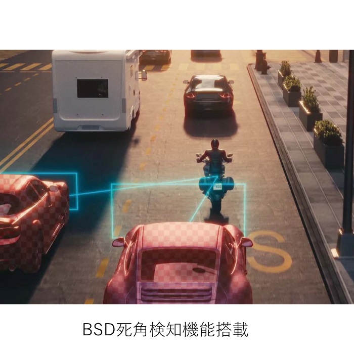 ◇死角検知システムBSD機能搭載で後方から接近する車両を自動検知しモニター表示。