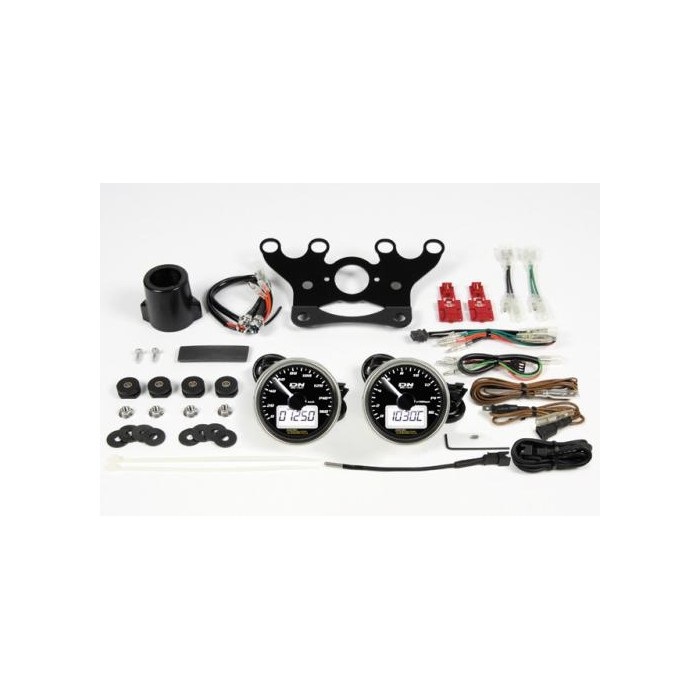 キット内容:DNスピードメーター、DNタコメーター、ラバーマウントタイプメーターステー、配線類に加え、2つのLEDインジケーターランプを装備。