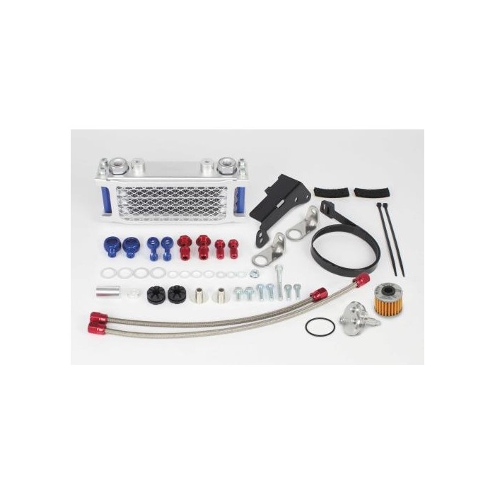 オイルクーラーを取付けることで、エンジンボアアップに伴う油温上昇を抑えることが出来ます。オイルクーラープレート、ガードが標準装備。
