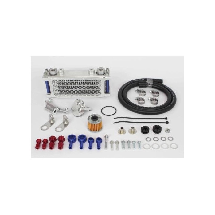 クーラー本体は冷却効果に優れたコンパクトクールを採用。オイルクーラーを取付けることで、エンジンボアアップに伴う油温上昇を抑えることが出来ます。オイルクーラープレート、ガードが標準装備。