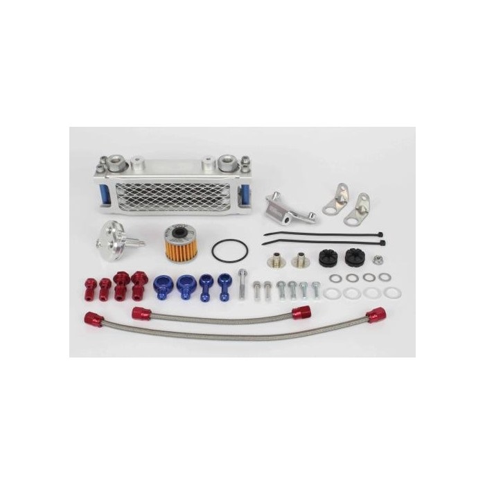 クーラー本体は冷却効果に優れたコンパクトクールを採用。オイルクーラーを取付けることで、エンジンボアアップに伴う油温上昇を抑えることが出来ます。オイルクーラープレート、ガードが標準装備。