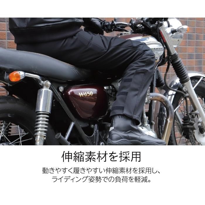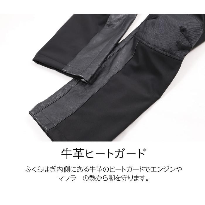 膝下には本革のヒートガードを装備し、足元もしっかり保護。