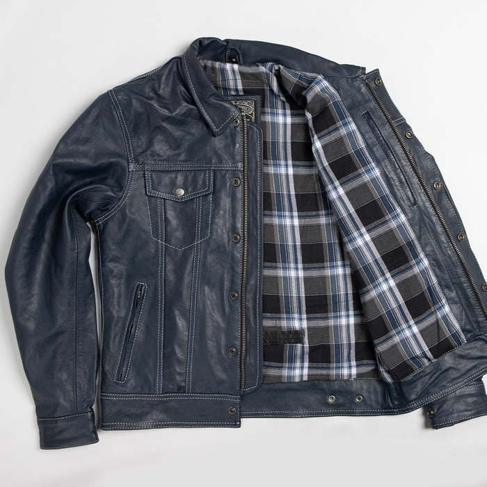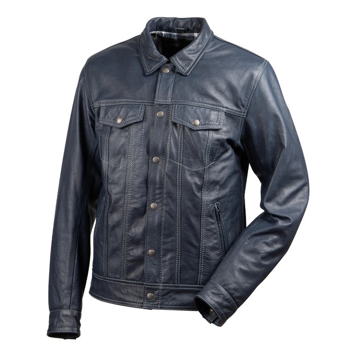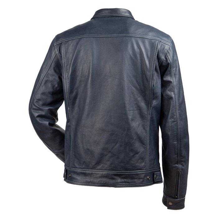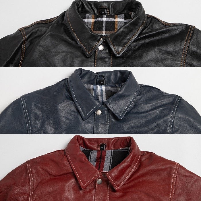 ステッチがアクセントの牛革を使用した、オールシーズンジャケット。