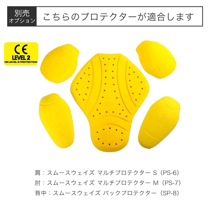 肩・肘・背中・胸にはプロテクターポケットが配置。