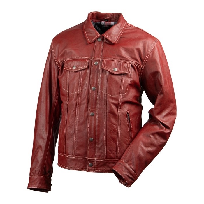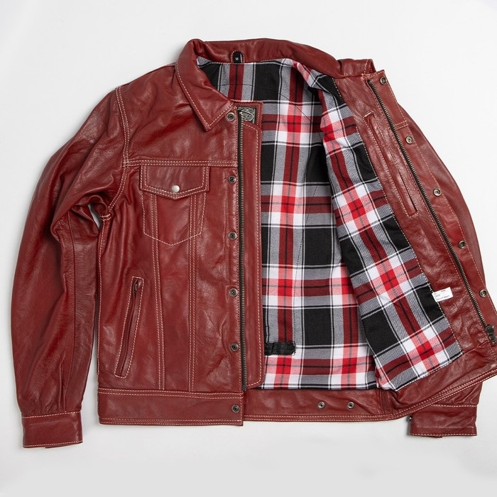ステッチがアクセントの牛革を使用した、オールシーズンジャケット。