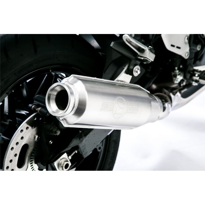 さまざまな形状のサイレンサーが存在する中、モリワキがモンスターの伝統を守り抜くのは「絶対」ですが、この伝統の片鱗を多くの人に味わって頂きたいという想いで大胆に踏み切った「スリップオンタイプ」の採用となっています。