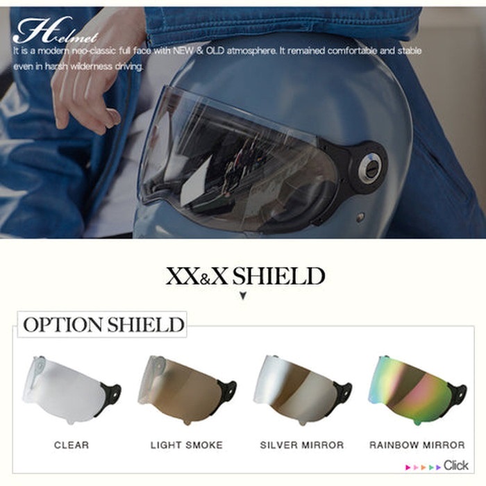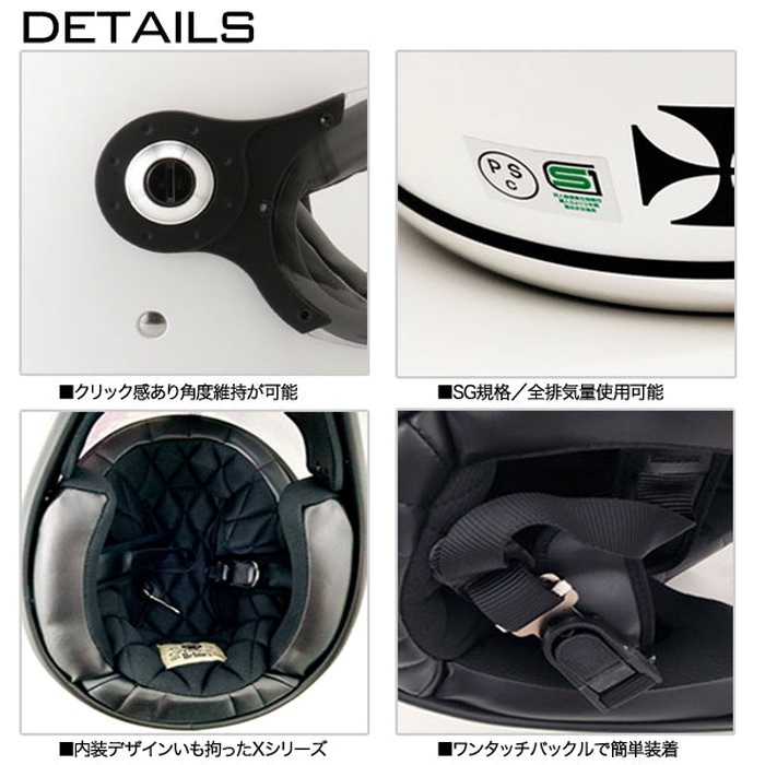 シンプルなデザインながら大きめのシールドは、視野が広くツーリングの際も快適にライドに集中する事ができます。シールドの動きにも拘りを持ち、動かすとクリック感があり止めたい箇所でしっかり止まり、その角度を維持する事ができます。
