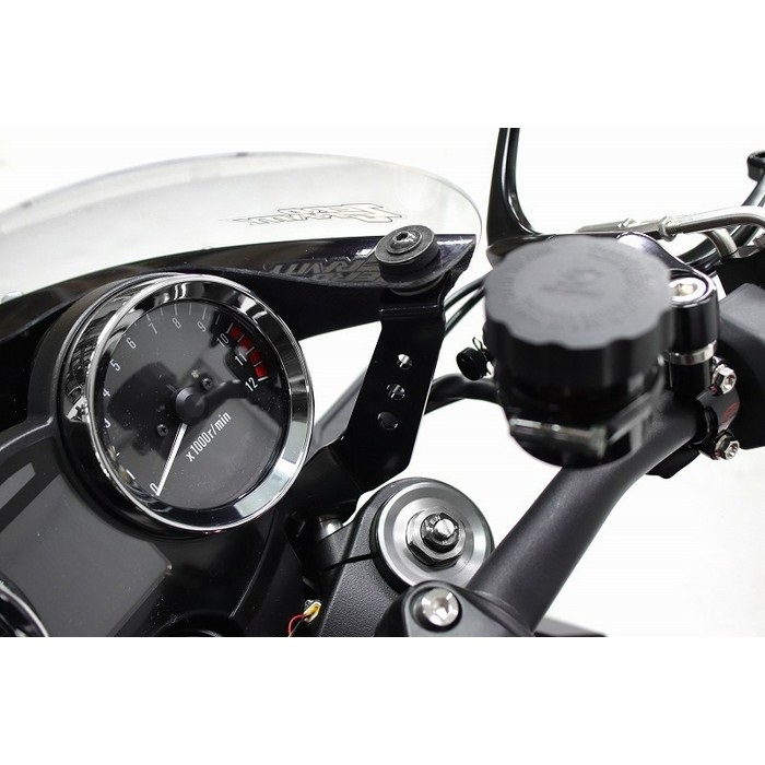 取付けパーツには、強度を重視したスチール製のステーと、カウルとタンクのラインをキレイに見せるためヘッドライト位置をオフセットするアルミ削り出しブロックが付属します。