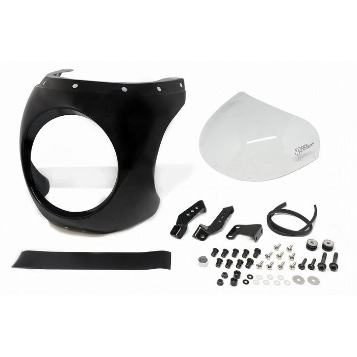 オートバイ本来のスポーツ性能に快適さを加えた大人のカスタマイズをコンセプトに、できるだけ低く、車体側に近づけたローフォルムのビキニカウルです。ノーマルのスタイル・雰囲気を崩さずにタンクとカウルとの一体感を持たせました。