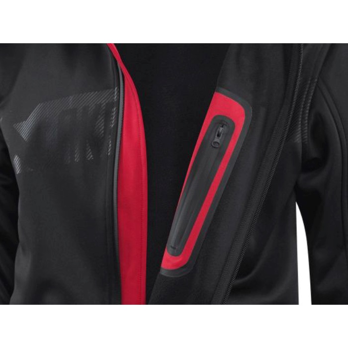 ポリエステル100%、3層構造で撥水加工を施したこのジャケットは、サーキットサイドでもレジャーでも暖かくドライな着心地を保ちます。