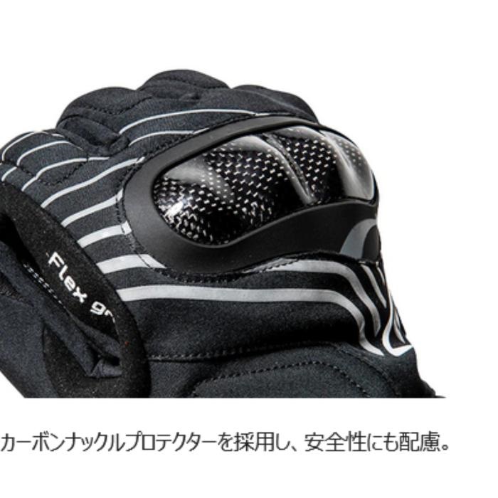 デザインのアクセントであるとともに、安全にも寄与します。甲にはカーボンナックルプロテクターを装備。
