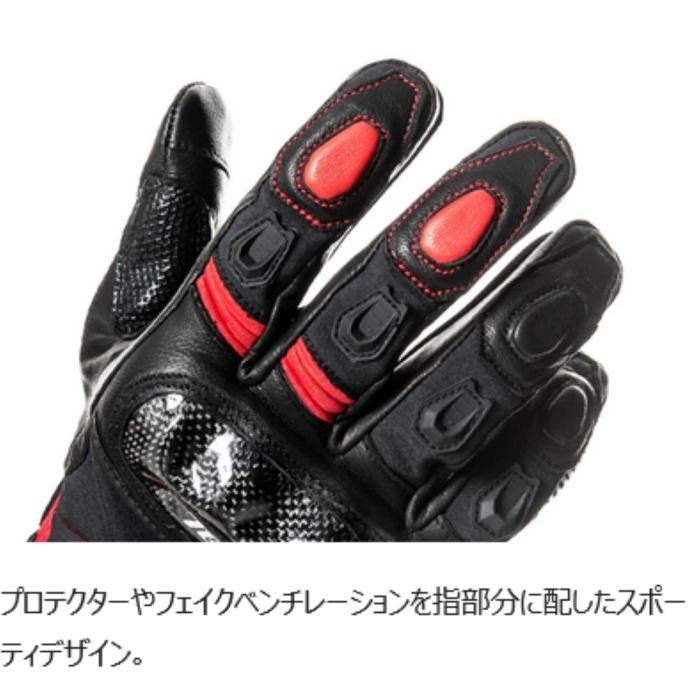甲側のカーボンナックルプロテクターは、指の動きを妨げないフロート構造。掌側にもカーボンプロテクターを採用し、安全性を高めています。