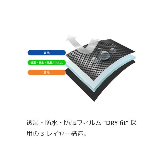 透湿・防水・防風フィルム "DRY ?t" 採用の 3 レイヤー構造。