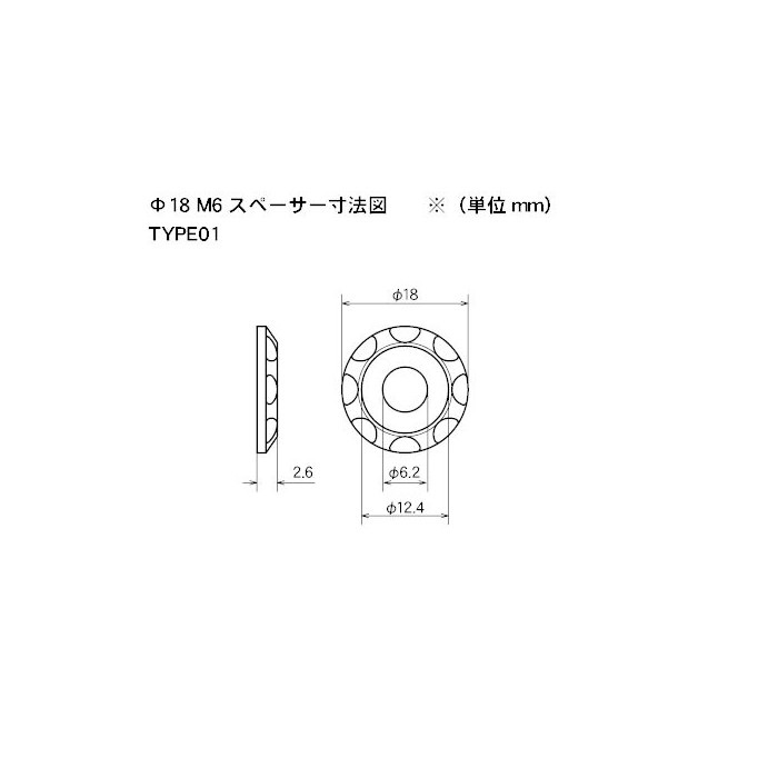 アルミスペーサー Ф18 M6用 Type01 4個入り