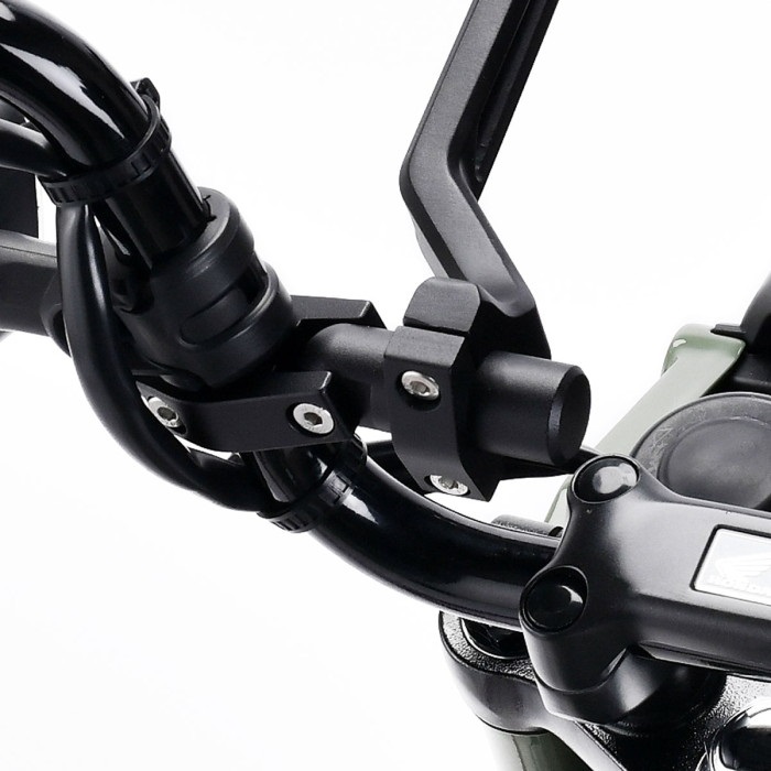 ハンドルバーに専用アダプターを装着し、アームを取付ける。モンキー125等の幅の狭いハンドルバーから、オフロード用の幅の広いハンドルバーまで対応。好みに合わせて上下反転可能なスタンダードスクリーンを標準装備したスタンダードスクリーンタイプと、単眼丸目ライトに合わせた設計のショートスクリーンを標準装備したショートスクリーンタイプをラインナップ。