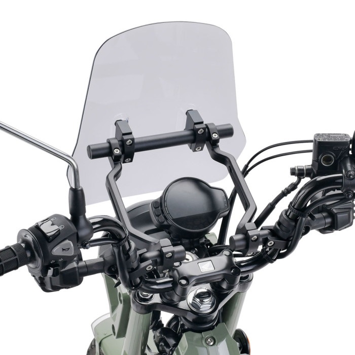 あらゆるハンドルバーにボルトオン装着が可能なウィンドシールド。