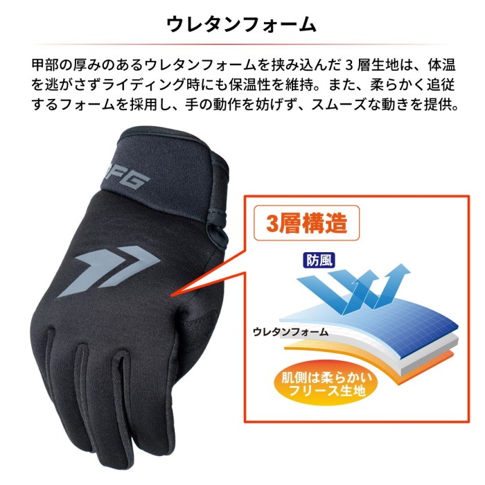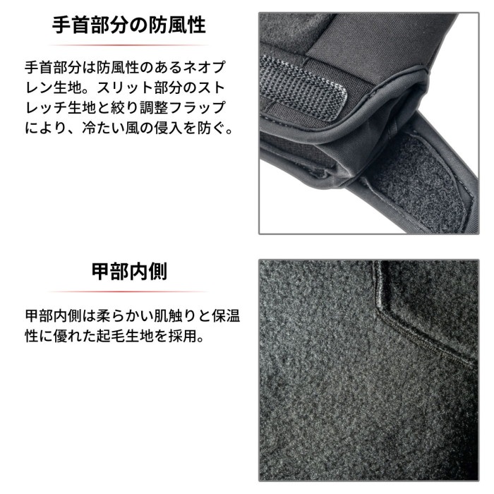 MXグローブとして必要な操作性を損なわずに、体温を逃さず、手を冷えから守る。走り始めの体が温まっていないウォーミングアップ時や雪が降るシチュエーションなど、厳冬期の様々なライディングシーンをサポート。