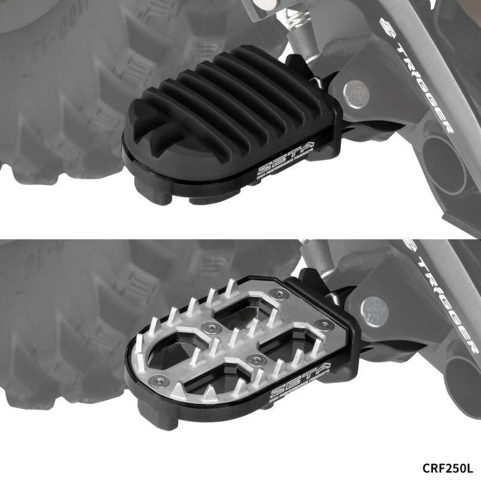 ロングツーリングから林道まで、シーンを選ばずマルチに使えるアドベンチャーフットペグ。ツーリング先の林道でも、ゴムカバーとステンレスブレードを、工具なしで簡単に切替可能。