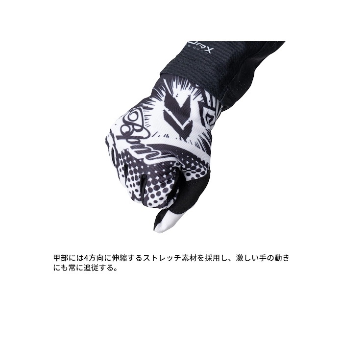 • 甲部には4方向に伸縮するストレッチ素材を採用し、激しい手の動きにも常に追従する。