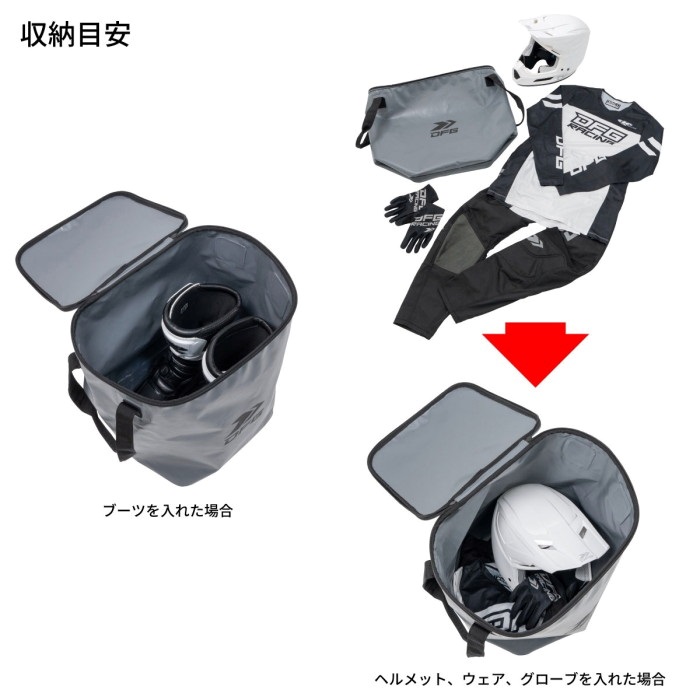 汚れたライディングギアをまとめて収納!マルチに使える丸洗い可能防水ギアバッグ。