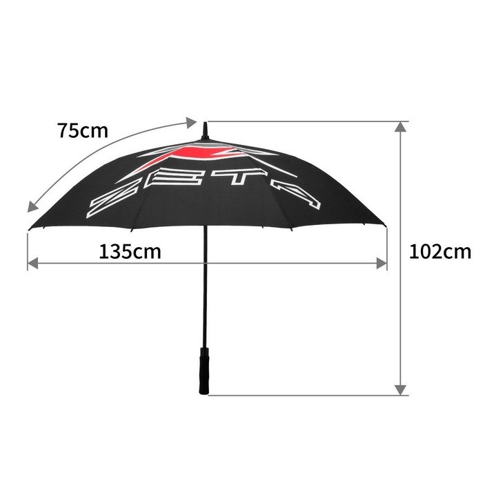 開いた時の直径が135cmと通常の傘より大きく、レース観戦やアウトドアイベントに便利。