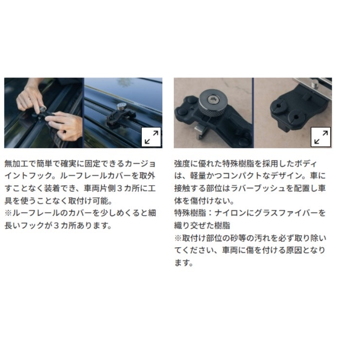 ・カージョイントフックを取付けたままでの走行は危険ですので避けてください。