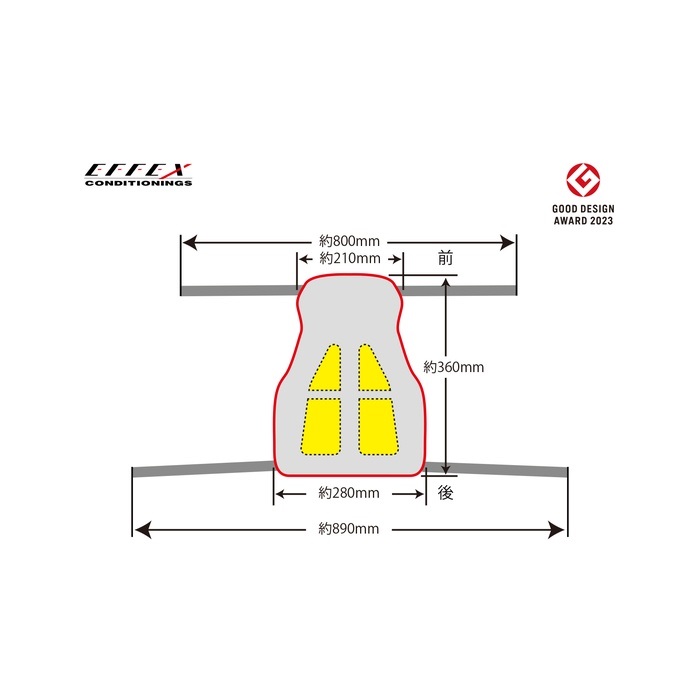 サイズ:約210(前幅)×約280(後幅)×約360mm(前後)、厚さ:14mm、ベルト部:長さ(片側)約25cm
