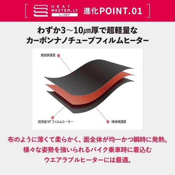 カーボンナノテクノロジーで ヒートマスター史上最高の 軽やかな着心地を提案