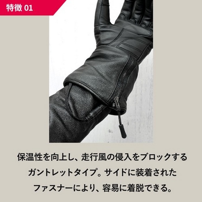 保温性を向上し、走行風の侵入をブロックするガントレットタイプ。