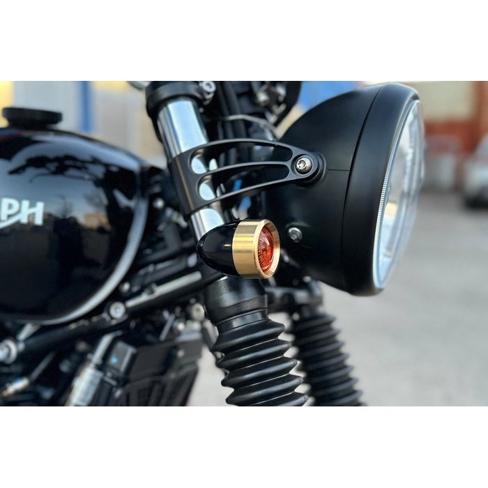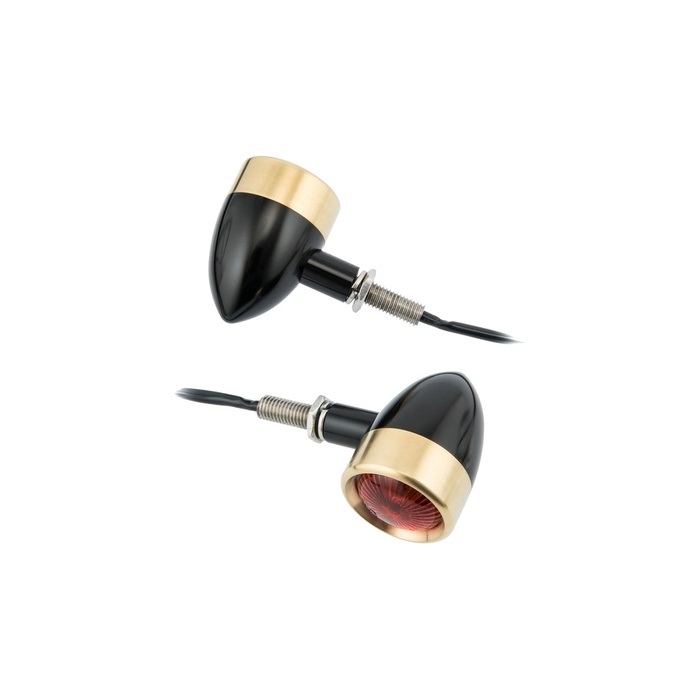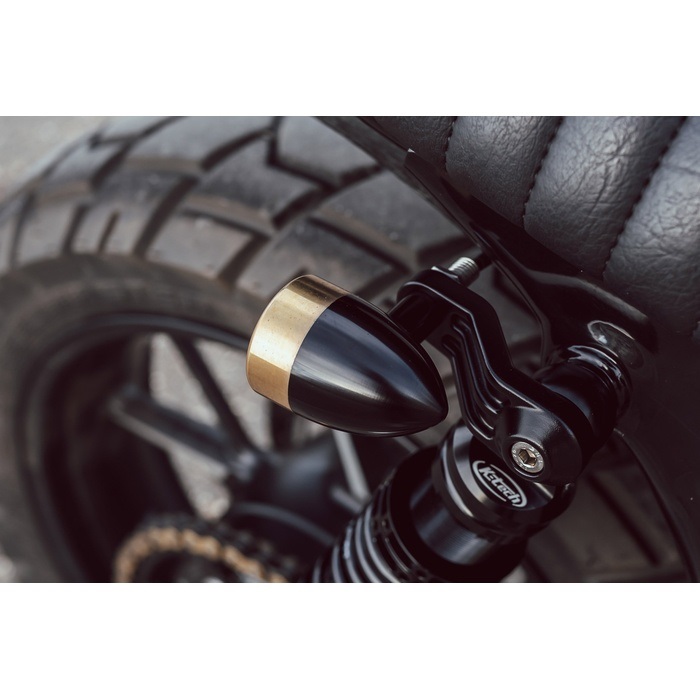 JPS(ジョン・プレイヤー・スペシャル)をイメージしたブラック×ゴールドの砲弾型ビレットウインカー。