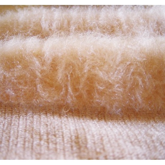ウールよりも軽くソフトな風合いを持つこだわりのオリジナルバルキー糸を使用した生地素材を、特許製法「ワシオ式起毛」で格段に暖かい起毛素材へと昇華。
