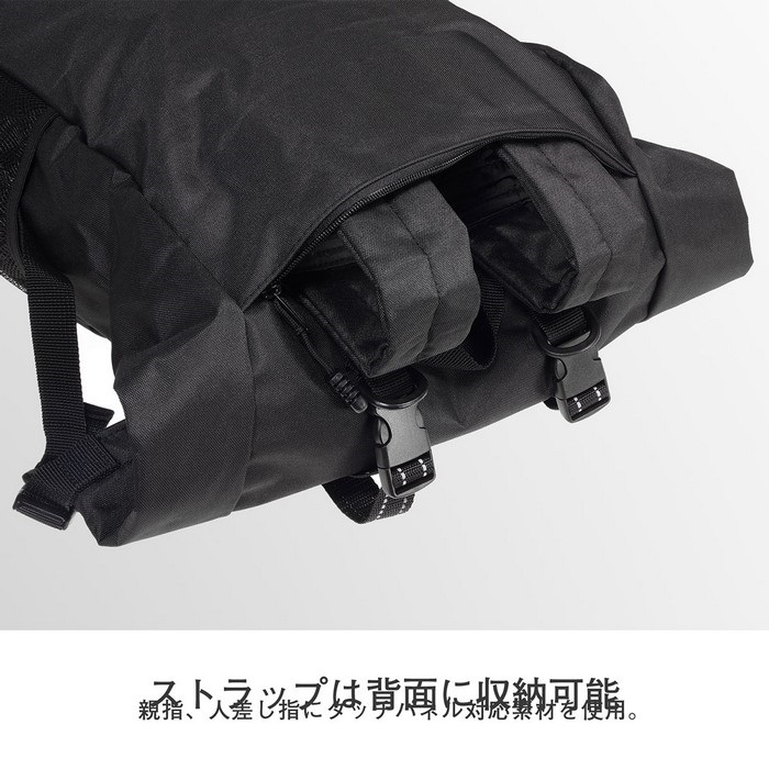 ショルダーストラップとウエストベルトを収納し、スタッフサックとしても使用できます。