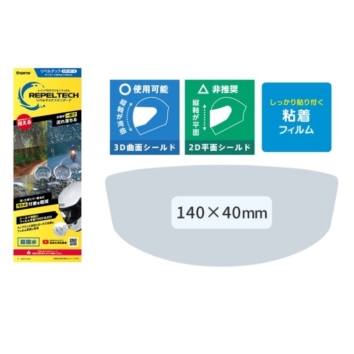 ・シールド表面にフィルムを貼るだけレインプロテクションフィルム