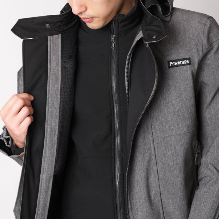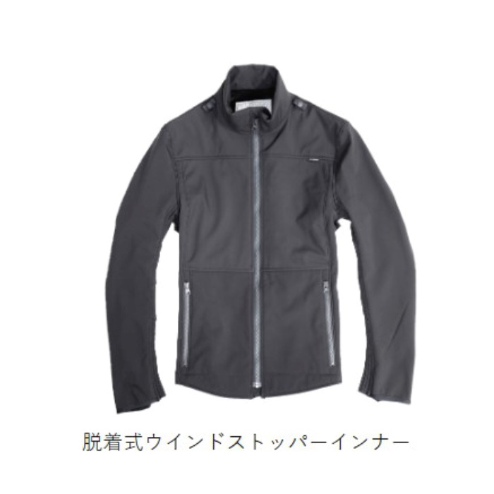 起毛素材を使用した「脱着式ウインドストッパーインナー」と、後脇のベンチレーションを利用すれば、寒い時期からあたたかい時期までのオールシーズンに対応します。バイク用立体構造で運動性も抜群。機能性とデザイン性を備えました。春・秋・冬、晴れ・風・雨、季節と天候を楽しむ一着です。