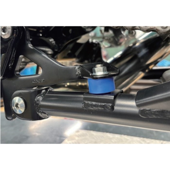 -②センタースタンドを跳ね上げた際、純正ラバーのまま使用されると弊社マフラーに干渉 & 受傷の