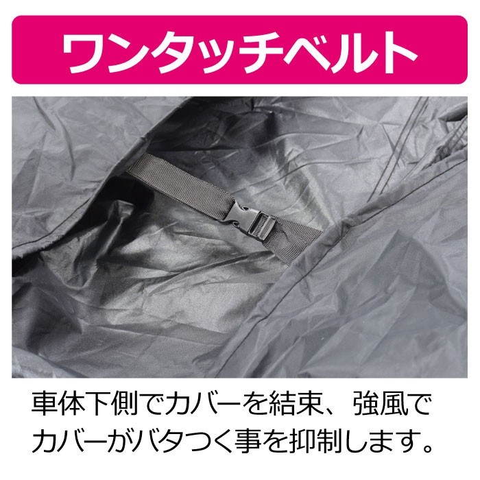 軽量コンパクトな150デニールの生地を使用し、日常の使い勝手を追求したエントリーユーザー向けのバイクカバーです。