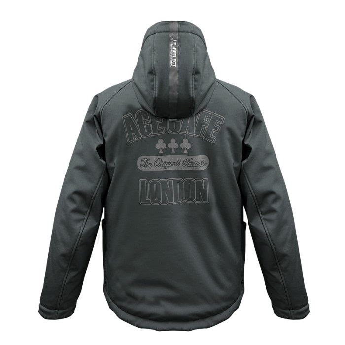 大判のACECAFEロゴやグラフィックがその存在を主張する超撥水Ei:Coating生地のウインタージャケットです。