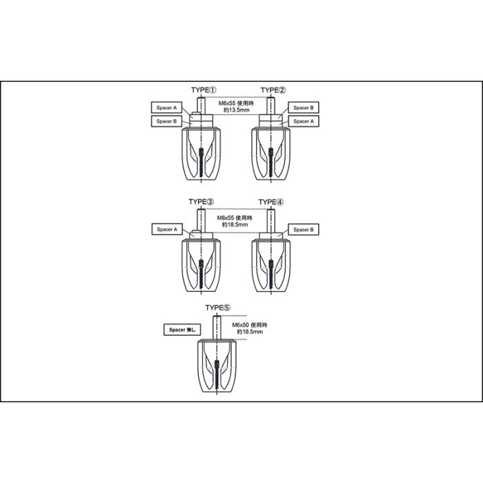 付属パーツの組み合わせにより5タイプの取り付けが可能です。
