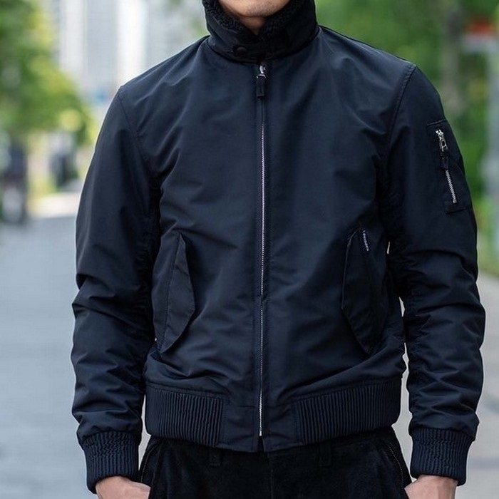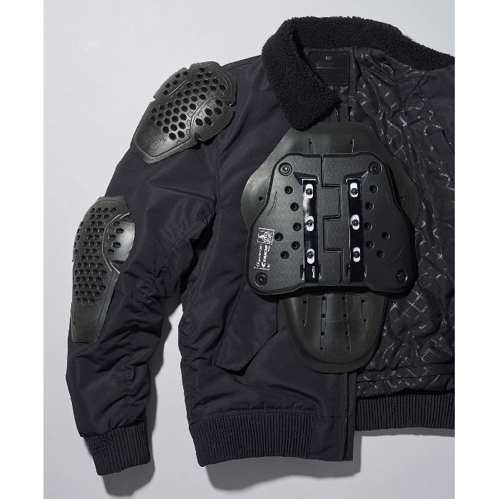 ミリタリーのフライトジャケットをベースにモーターサイクル用に再デザインした一着。