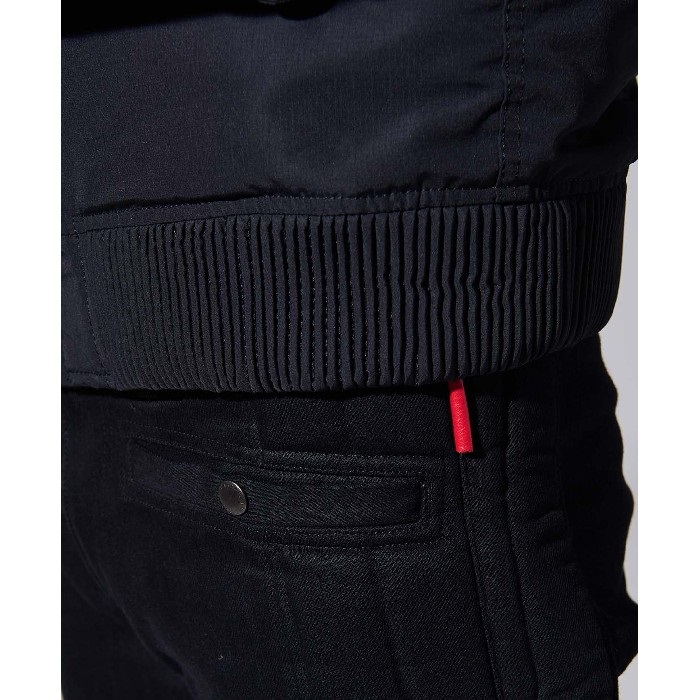 裾と袖口に配置されたリブは耐久性と防風性を高めたシャーリング仕様を採用。縫製部分に施されたパッカリングデザインはゴムを縫い付けることで伸縮性を確保、背面のアクションプリーツとともにライディングポジションを制限することなく、体の動きに追従します。